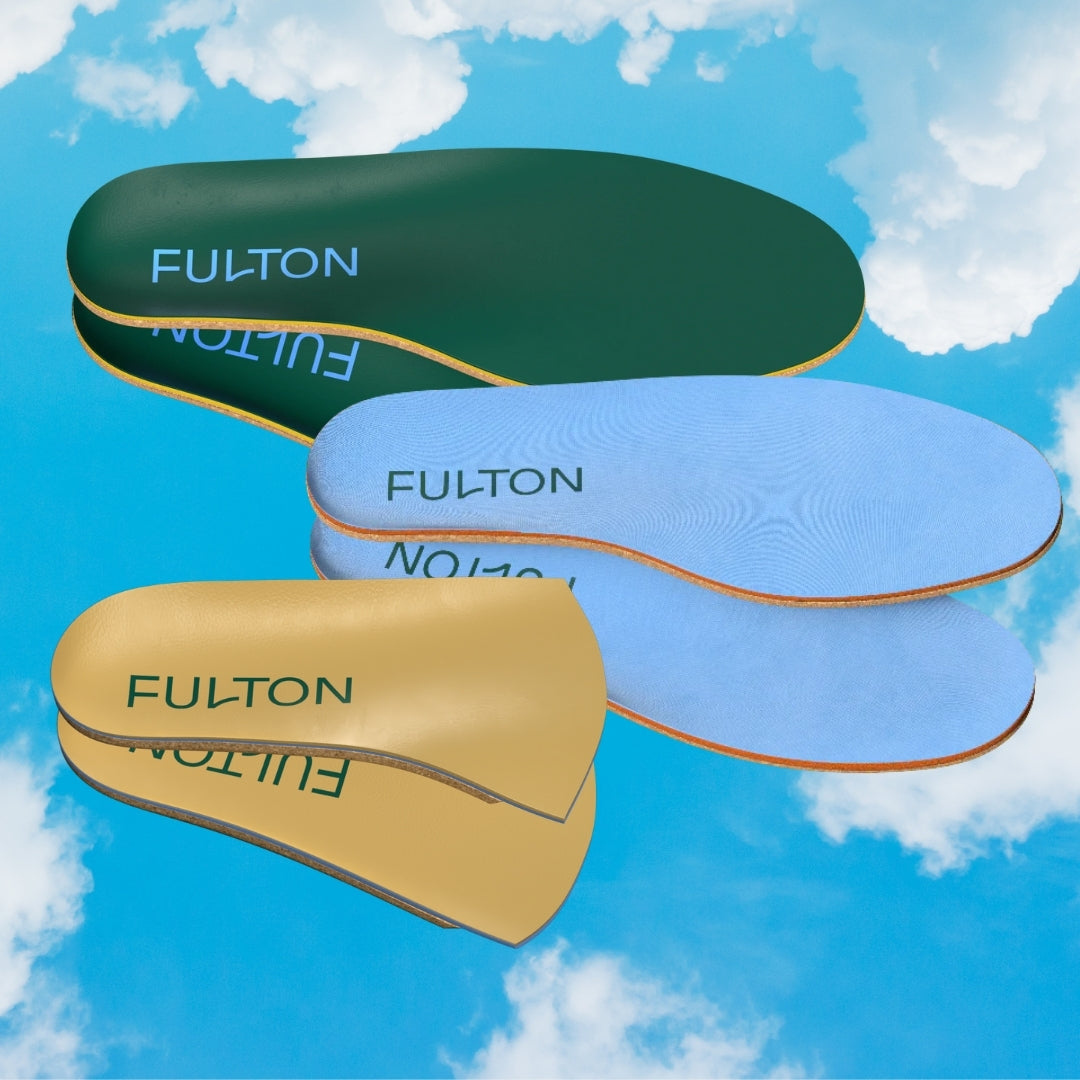 Fulton insoles support all arch types: from flat feet to high arches, and everything in between. They mold to support the way you walk in the shoes you’re wearing. After 10 hours of wear, your insoles will be customized for your unique arch, providing support that’s tailored just for you